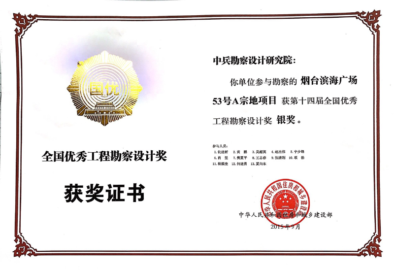 該工程包括巖土工程勘察和水文地質(zhì)勘察、基坑支護(hù)等項(xiàng)目。1、勘察方面我院在已有資料的基礎(chǔ)上,根據(jù)建筑物的特點(diǎn)和地質(zhì)條件制定勘察綱要。對超高層建筑按樁基規(guī)范布置鉆孔;裙房和地下車庫按天然地基布置鉆孔并考慮地下水的抗浮問題;場地布置3個(gè)抽水孔,確定粉質(zhì)粘土的滲透系數(shù);在不同位置測量孔隙水的壓力;對地基的均勻性和承載力進(jìn)行了合理的論證;對基坑支護(hù)方案進(jìn)行分析論證,提出了合理的基坑支護(hù)方案。2、基坑支護(hù)設(shè)計(jì)與施工:根據(jù)環(huán)境條件的不同采取不同支護(hù)措施;基坑深度13.10m,采用土釘墻+錨桿護(hù)坡樁的支護(hù)方案。3、壓漿試驗(yàn)研究:首先課題立項(xiàng),對壓漿樁承載力對比分析,采用先進(jìn)的光纖測試技術(shù),通過試驗(yàn)為設(shè)計(jì)減短樁長提供了科學(xué)依據(jù);經(jīng)專家評審結(jié)論:本工程施工組織設(shè)計(jì)技術(shù)思路清晰明確,工作方法合理,同意通過評審;在現(xiàn)場高層建筑物位置布置2組試驗(yàn)樁,各組選一根樁布置光纖,對每根試驗(yàn)樁中心進(jìn)行鉆探,為進(jìn)行資料分析提供了充分依據(jù);采用旋挖鉆機(jī)施工確定施工參數(shù),為建筑物樁基施工提供依據(jù);在樁底設(shè)置3根樁底注漿閥注漿,在樁側(cè)對砂層注漿,通過注漿改善樁土界面,增大樁側(cè)摩阻力和端承力;通過樁試驗(yàn),基礎(chǔ)樁由274根減至244根,為業(yè)主節(jié)省了投資并縮短工期。4、樁基施工、根據(jù)試驗(yàn)結(jié)果對樁底樁側(cè)注漿,確保了樁端樁側(cè)的注漿質(zhì)量。經(jīng)檢測滿足設(shè)計(jì)和國家規(guī)范的要求。該工程2015年榮獲國家優(yōu)質(zhì)勘察設(shè)計(jì)獎銀獎。