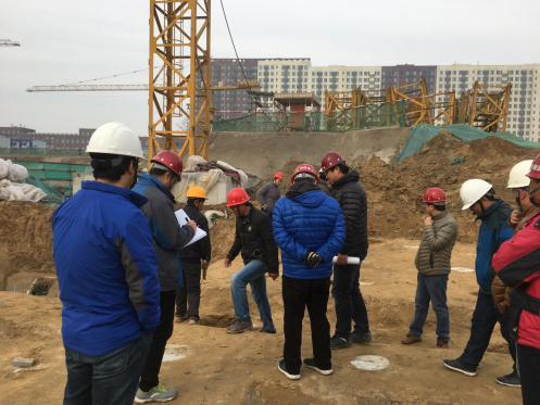 2017年2月17日至2017年2月26日,由北京市朝陽區(qū)質(zhì)量監(jiān)督檢查站二組、四組、勘察單位、設(shè)計(jì)單位、監(jiān)理單位、施工單位等聯(lián)合對朝陽區(qū)東郊農(nóng)場保障房ABCD地塊(棚戶區(qū)改造定向安置房)B、C區(qū)基底驗(yàn)槽和CFG樁工程進(jìn)行質(zhì)量驗(yàn)收。驗(yàn)收內(nèi)容主要包括:B、C區(qū)基坑支護(hù)工程、主樓CFG樁復(fù)合地基工程、車庫基底土層分布及天然地基承載力、車庫抗浮錨桿工程、主樓及車庫基地土質(zhì)及地下水情況、設(shè)計(jì)基地標(biāo)高等。